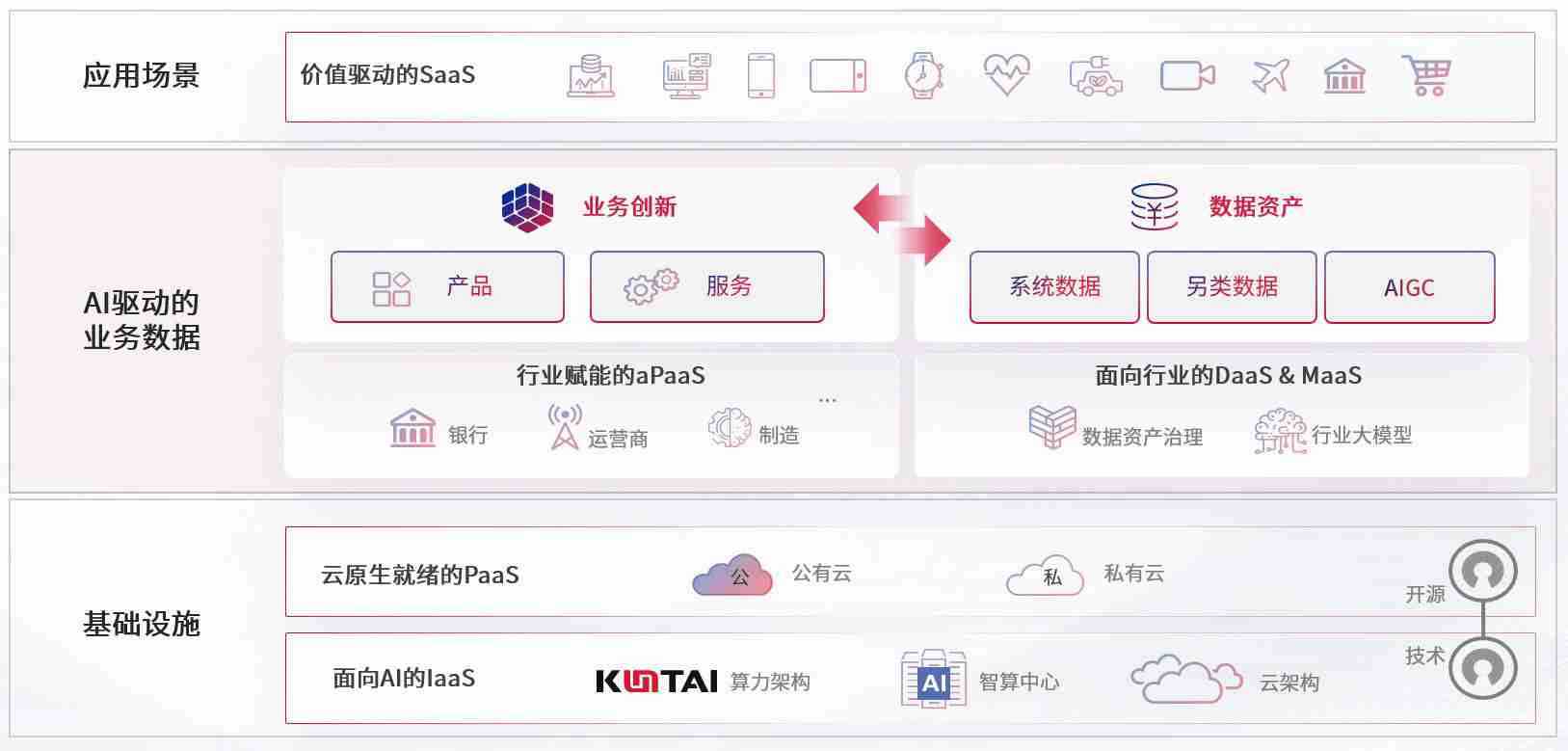 数字时代,,,围绕企业数字化转型的关键要素,,星空娱乐数码开创性的提出数云融合战略和技术体系框架,,着力在云原生、、、、数字原生、、、AI原生和信创产业上架构产品和服务能力,,,,为处在不同数字化转型阶段的快消零售、、、、汽车、、金融、、医疗、、政企、、、教育、、、、运营商等行业客户提供泛在的敏捷IT能力和融合的数据驱动能力,,构建跨界融合创新的数字业务场景和新业务模式,,,助力企业级客户建立面向未来的核心能力和竞争优势,,,全面推动社会的数字化、、、智能化转型升级。。。