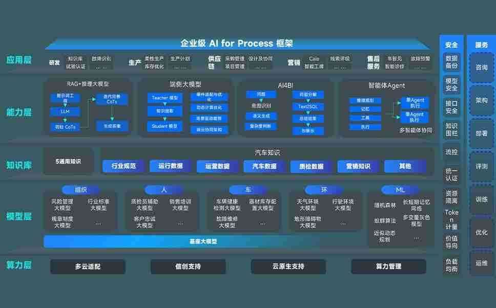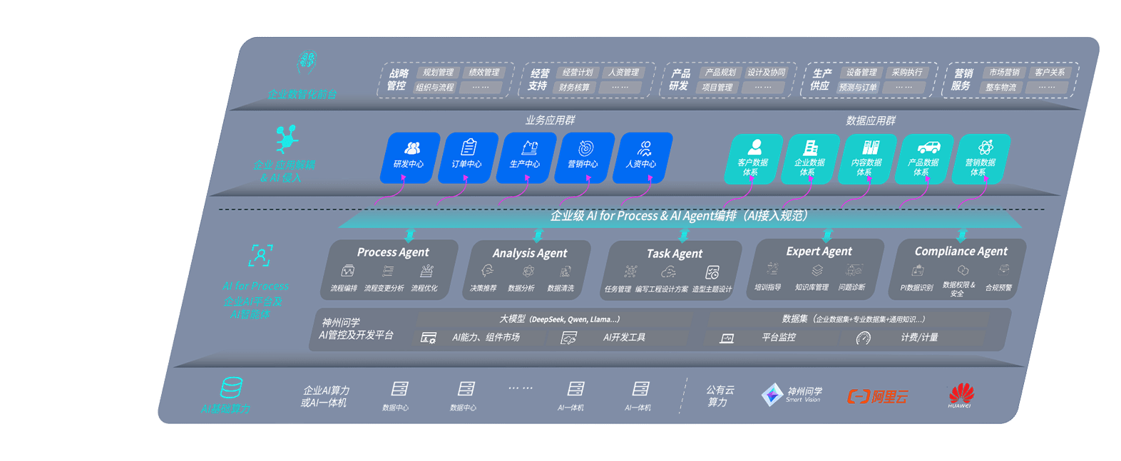 星空娱乐问学智车解决方案是一套基于AI技术的汽车行业智能化系统,,覆盖从底层算力到顶层AI应用的全栈方案。。方案由算力层、、、、模型层和应用层组成:算力层,,方案支持多种一体机配置,,,,具备云端灵活部署、、多云适配以及动态优化计算资源的能力;模型层,,星空娱乐问学平台版提供了企业级AI应用一站式构建与管理平台,,,,支持基于后训练强化技术的汽车企业专属模型的训练、、评测和运营;应用层,,,,星空娱乐问学DeepSeek版提供包括超级员工、、智能招采、、、智能营销、、智能客服、、AI for BI等一系列解决方案,,,可助力汽车行业实现数字化转型,,,让管理更智能、、、响应更敏捷。。。。